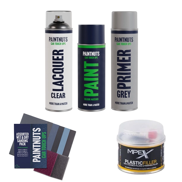 PaintNuts Colour Matched Aerosol Set with Plastic Filler, Sanding Pack, Primer, Paint & Lacquer